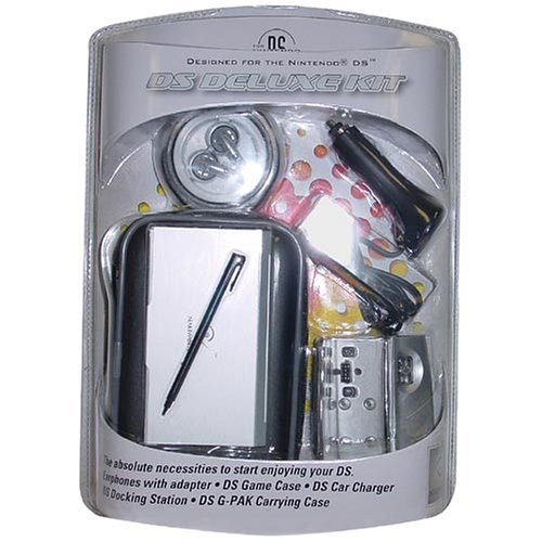 | 24 of 25 people found the following review helpful = Fun: This review is from: Nintendo DS Deluxe Kit (Video Game) I picked up one of these kits today at GameStop. The quality of the parts in the kit vary. The DS case is nice and rigid but suffers the same problem that plagues a lot of GBA cases; Not enough room for games (about 5 DS, side by side in a zipper pocket with no seperators). The included game case, that looks a lot like a business card holder, will only hold three additional games in it's rubber molded interior, as well as the oversized stylus included. I'm paranoid about third party stylus' scratching my DS screen and won't use it.There's also an included car charger and docking base. The car charger is probably the lowest quality item in the kit. It's lacking the fuse that you'd find on most quality chargers, and generally feels cheap. Use at your own risk. The docking station is impressive and uses your DS charger for power. When the DS is charging, a blue led shines through the base. My only complaint is that lining the charger port up can be cumbersome... Read more By = Fun: Amazon Verified Purchase This review is from: Nintendo DS Deluxe Kit (Video Game) Not sure whether they screwed up the description here, or the shipping, but the kit we received was for a DSi not a DS - so the charger and the docking station weren't functional for a DS. |