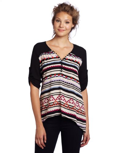 BCBGMAXAZRIA Women's Crystal Button Down Top With Rolled Sleeve, Bright Raspberry Combo, Large Reviews
