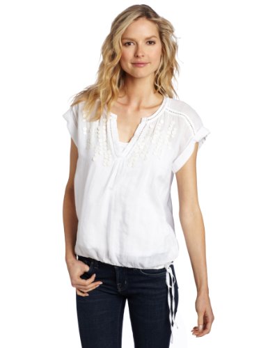 Calvin Klein Jeans Women's Cinch Bottom Woven Top, White, Medium Reviews